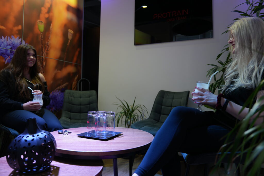 Durch ein gemischtes Klientel und freundliche Betreuung auf der Trainingsfläche, bieten wir eine angenehme Trainingsatmosphäre. Nach deinem Training kannst du an der Theke auf unserem Sofa Platz nehmen und deinen Shake genießen.